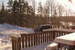 Das Naturgrundstück ist 2.500 qm groß, aber ohne jegliche Bedeutung, da es ohnehin keine Nachbarn gibt. Der nächste Nachbar ist 300 m entfernt, und das sind wir selbst. Zum See geht man eine Holztreppe hinunter, da das Haus ca. 20 m höher liegt als der See. Man kann direkt am Haus schwimmen (kein Sandstrand), angeln, rudern oder einfach nur die herrliche Natur genießen – zu jeder Jahreszeit. Es gibt einen Bootssteg mit Badeleiter und Ruderboot. Etwa 30 Minuten mit dem Ruderboot entfernt gibt es einen kleinen angelegten Sand/Kieselstrand.